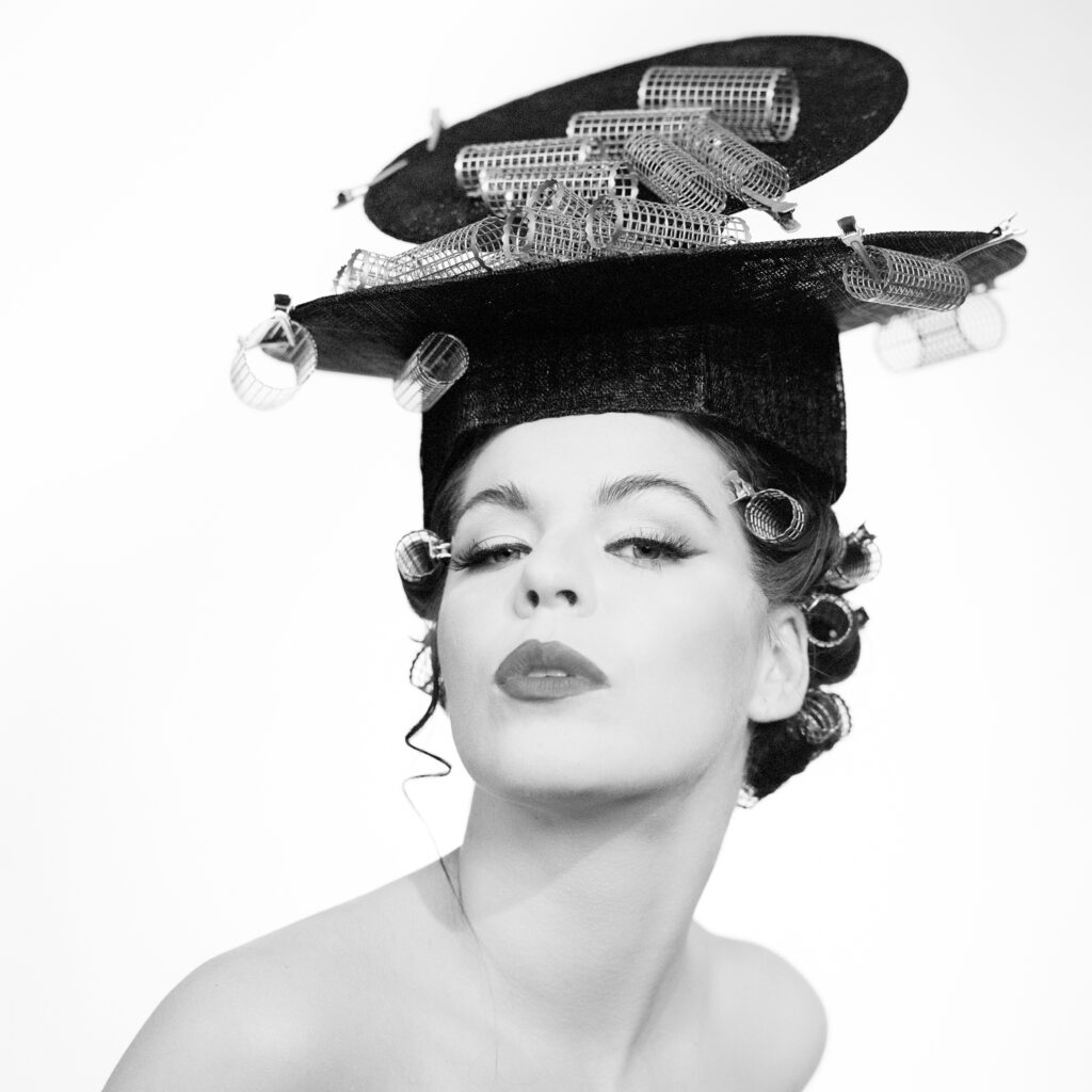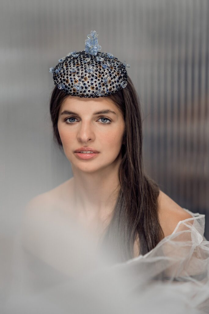 Prvním kloboukem Miroslavy Sochorové vystaveným v zahraničí byl model Contactor, inspirovaný Ottou Wichterlem a jeho kontaktními čočkami ; Foto: Lucie Vysloužilová
